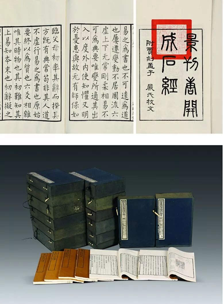 提要:唐石经始刻于唐文宗大和七年(833),于开成二年(837)刻戒,当时立于国子监太学,今存西安碑林。民国十五年,张宗昌皕忍堂请武进陶湘依据石刻代为督刻付之梨枣,文字依原拓影摹刻板,残缺处按阮元覆刻宋椠10行经文双勾补足,使其内容完整。全书用纸上乘,雕版精良,用墨乌亮,开本阔大,为民国时期精刻精印本之一。